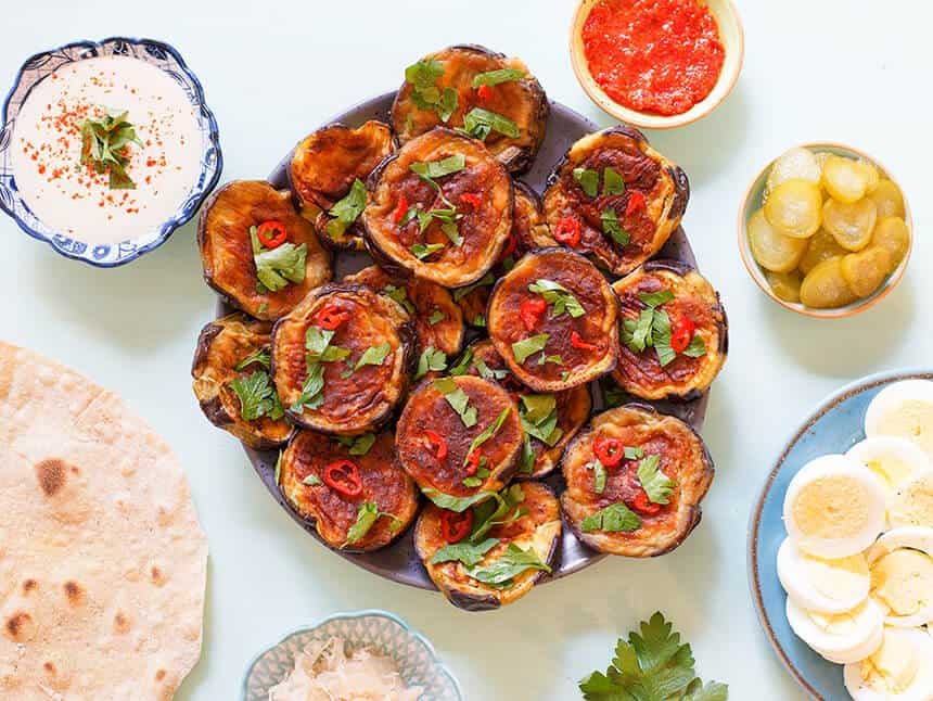סלט חצילים פיקנטי בתנור בטעם מושלם כאילו החצילים עברו טיגון