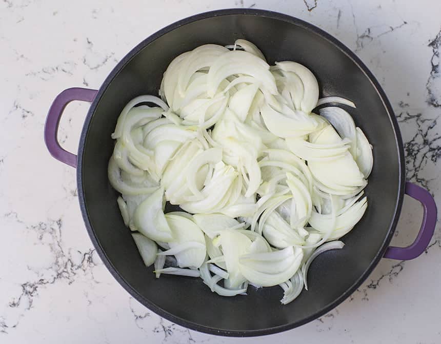 אני מתחילה בסידור 2 בצלים גדולים, שנותנים המון טעם לעוף.